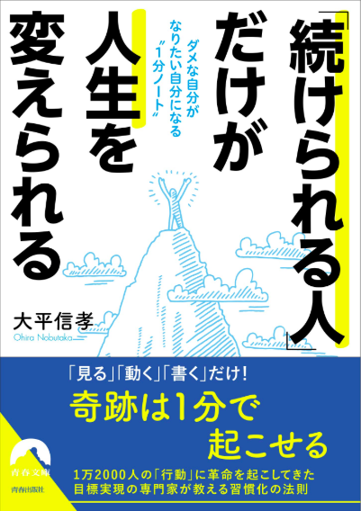 メンタルコーチ・大平信孝氏が、『「続けられる人」だけが人生を変えられる』と題して、習慣化シートの活用を中心とした、挫折知らずの「習慣化メソッド」を解説する一冊。