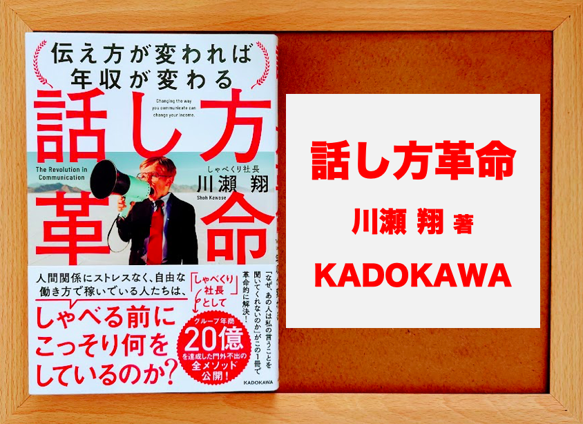 しゃべくり社長・川瀬翔氏が、『話し方革命』と題して、話し方は人生の潤滑油であり磨くほど人生に好影響をもたらすと提起し、人を動かす「話の型(話し方)」を徹底指南する一冊。